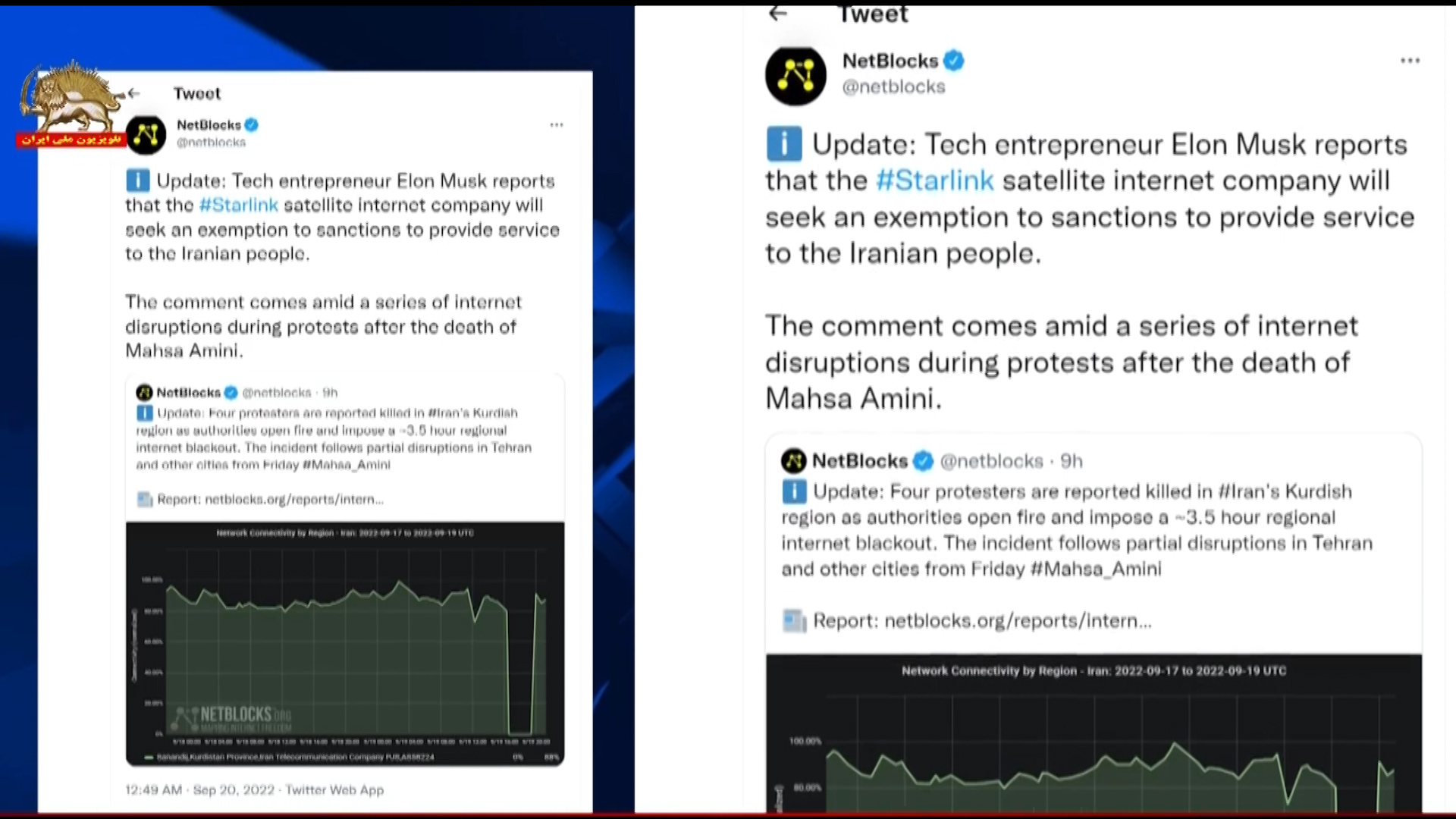 نت بلاکس، دیدبان جهانی اینترنت اعلام کرد: شرکت اینترنتی ماهوارهیی استارلینک به دنبال ارائه خدمات اینترنتی به مردم ایران است. نت بلاکس افزود: اظهارات ایلان ماسک به خاطر اعتراضات مردم است.
