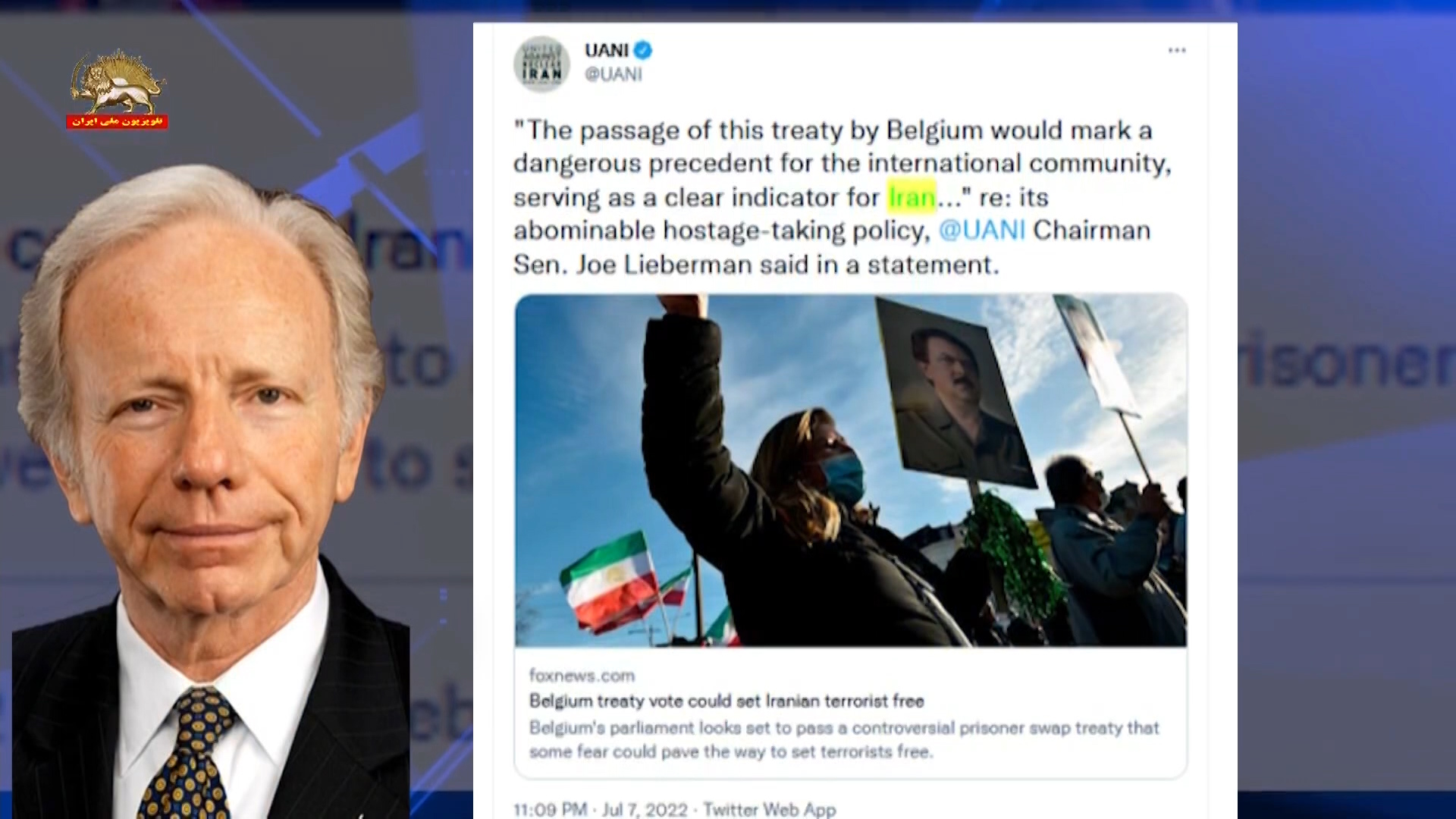 بیانیه سناتور لیبرمن در مورد معاهده شرمآور دولت بلژیک و رژیم آخوندی ـ ۱۹تیر۱۴۰۱