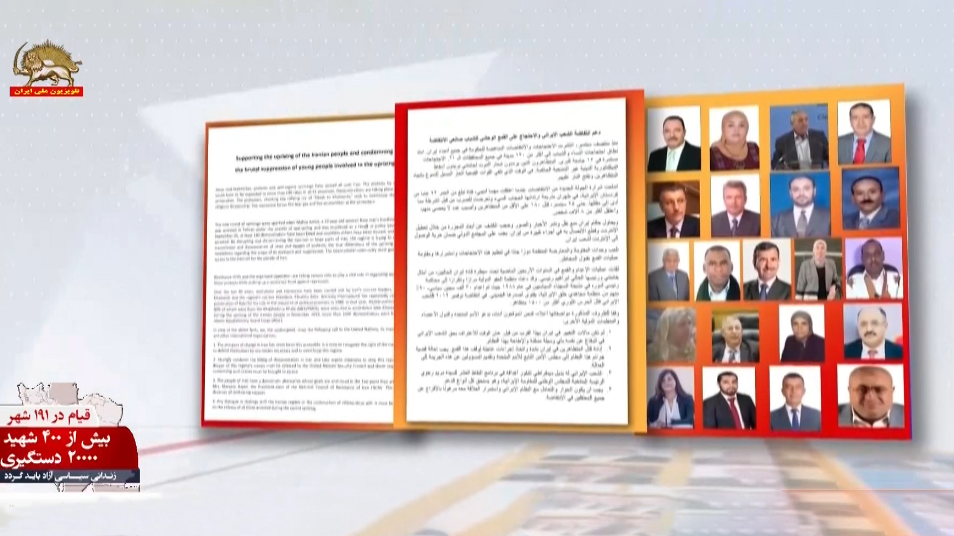 ۲۱تن از نمایندگان پارلمان از کشورهای اردن، فلسطین، یمن، تونس و موریتانی در بیانیه مشترکی ضمن حمایت از قیام سراسری مردم ایران از جامعه جهانی خواستند حق مردم ایران را برای دفاع از خود با هر وسیلهٔ ممکن و برای سرنگونی این رژیم بهرسمیت بشناسد