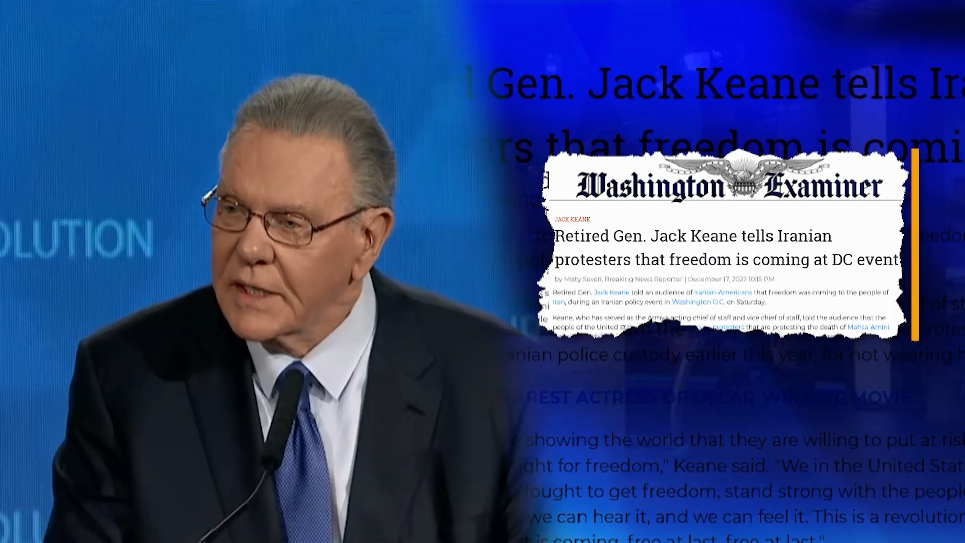 ژنرال جک کین معاون سابق ستاد ارتش آمریکا در کنفرانسی در واشنگتن گفت: مردم آمریکا قاطعانه در کنار مردم ایران ایستادهاند. آنچه در ایران جریان دارد یک انقلاب است. به مردم ایران میگویم آزادی فرا میرسد.