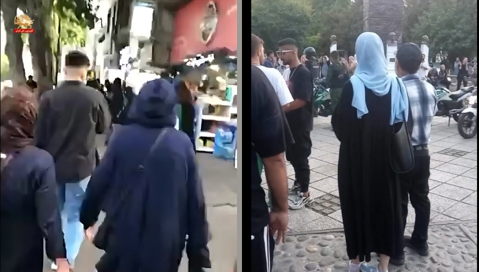 پس از چند دقیقه، نیروهای انتظامی رژیم با موتورسیکلت به جمعیت معترض حمله کردند.