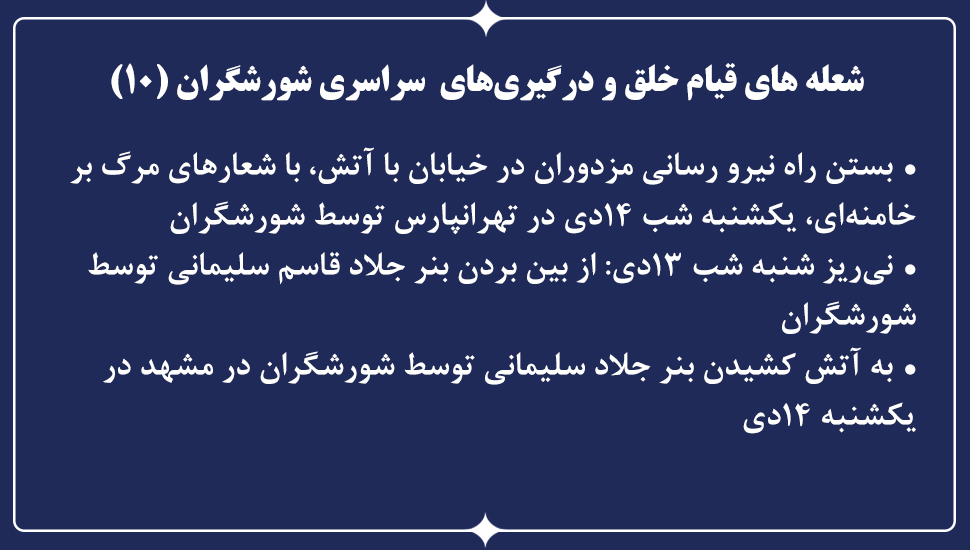 به آتش کشیدن بنر جلاد سلیمانی توسط شورشگران در مشهد در یکشنبه ۱۴ دی