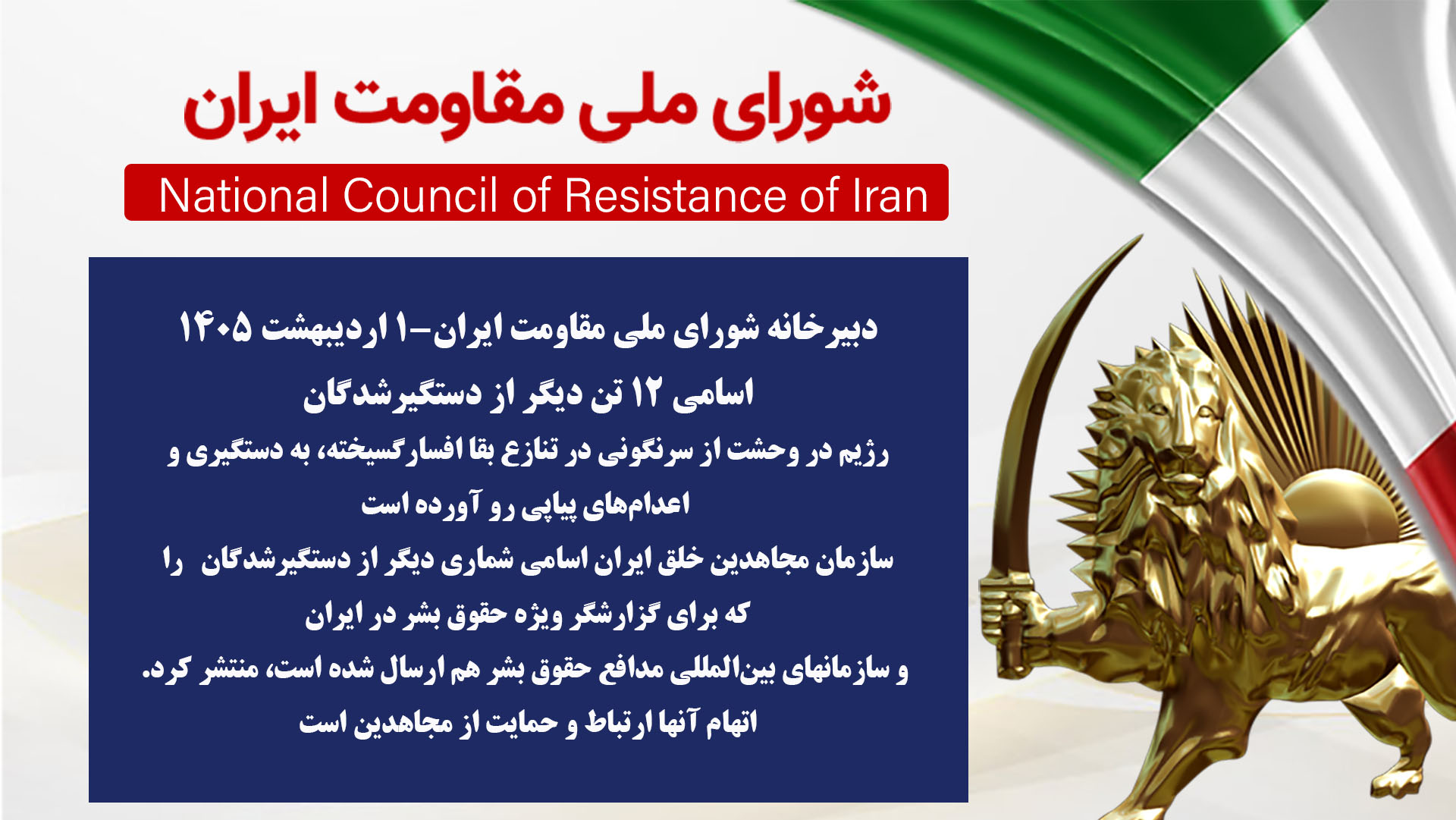 سازمان مجاهدین خلق ایران اسامی شماری دیگر از دستگیر شدگان را که برای گزارشگر ویژه حقوقبشر در ایران و سازمانهای بینالمللی مدافع حقوقبشر هم ارسال شده است، منتشر کرد. اتهام آنها ارتباط و حمایت از مجاهدین است. به دستور آخوند اژهای سردژخیم قضاییه جلادان، فشار و شکنجه بر روی زندانیان سیاسی افزایش یافته است. دیدار با این زندانیان و اطلاع از وضعیت آنها توسط نمایندگان ملل متحد، کمیسرعالی حقوقبشر، گزارشگر ویژه در مورد ایران و هیأت حقیقتیاب بینالمللی ضرورت مبرم دارد.